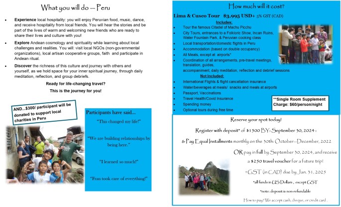 Preparations are underway for your Sacred Journey Tour to Peru-2025! Click the links below to download the brochure as well as the Draft Itinerary and Payment Schedule and to register today!